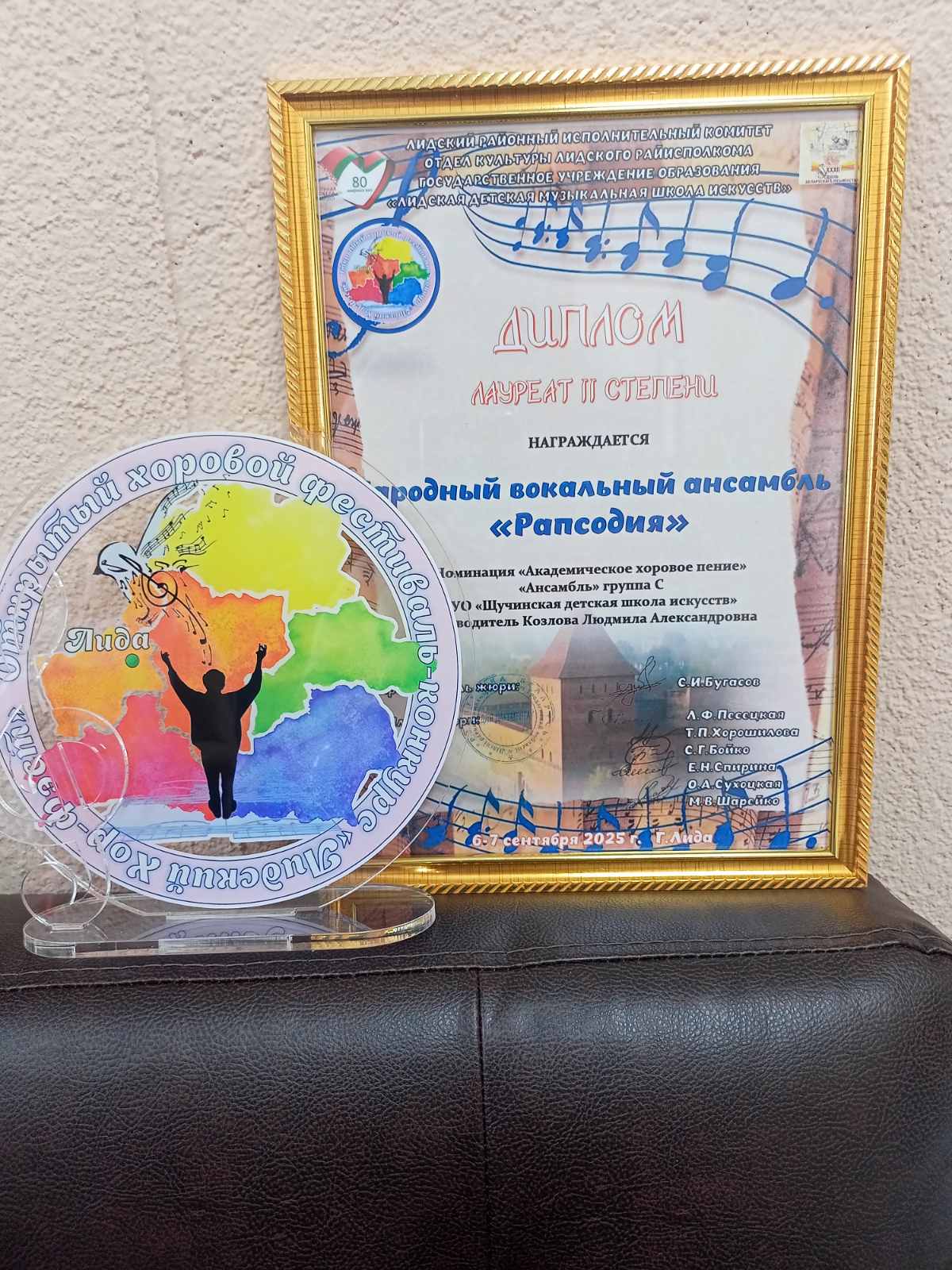 06.09.2025Ярко и запоминающееся прошли эти выходные для народного вокального ансамбля «Рапсодия» ГУО «Щучинская детская школа искусств». Коллектив получил диплом Лауреата II степени в номинации «Академическое хоровое пение» открытого хорового фестиваля-конкурса «Лидский хор-фэст», который проходил в рамках XXXII Дня белорусской письменности в городе Лида. Участникам ансамбля было приятно быть частью этого замечательного праздника, провести время в доброй и дружеской атмосфере.